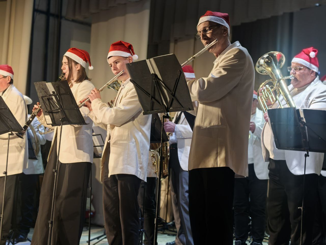 По традиции гостей мероприятия встретил духовой оркестр под руководством Алексея Ткаченко. В отчётном новогоднем концерте прозвучали лучшие номера от всеми любимых музыкальных групп "Амбрелла", "Харли Квин", "Берест". Яркие номера создали неповторимую атмосферу праздника.