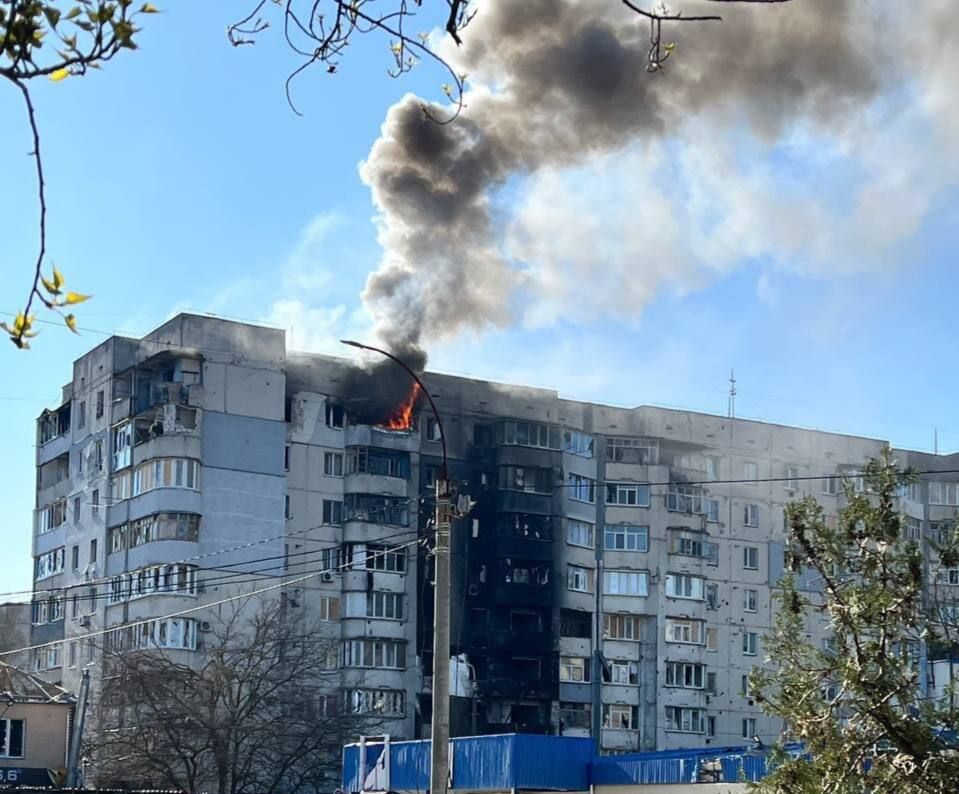 В Алёшках (Херсонская область) — также прилёт по жилой многоэтажке. И тоже дрон. К счастью, без жертв.