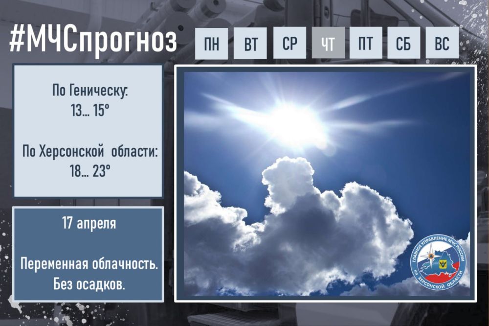 переменная облачность. Без осадков. Ветер восточный и юго-восточный 7-12 м/с. Температура воздуха ночью 6...11°; днём 18...23°, в прибрежных районах 13…18°.