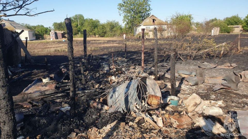 в селе Новокиевка на улице Украинская горели 2 хозпостройки и сухая трава на площади более 600 метров квадратных.