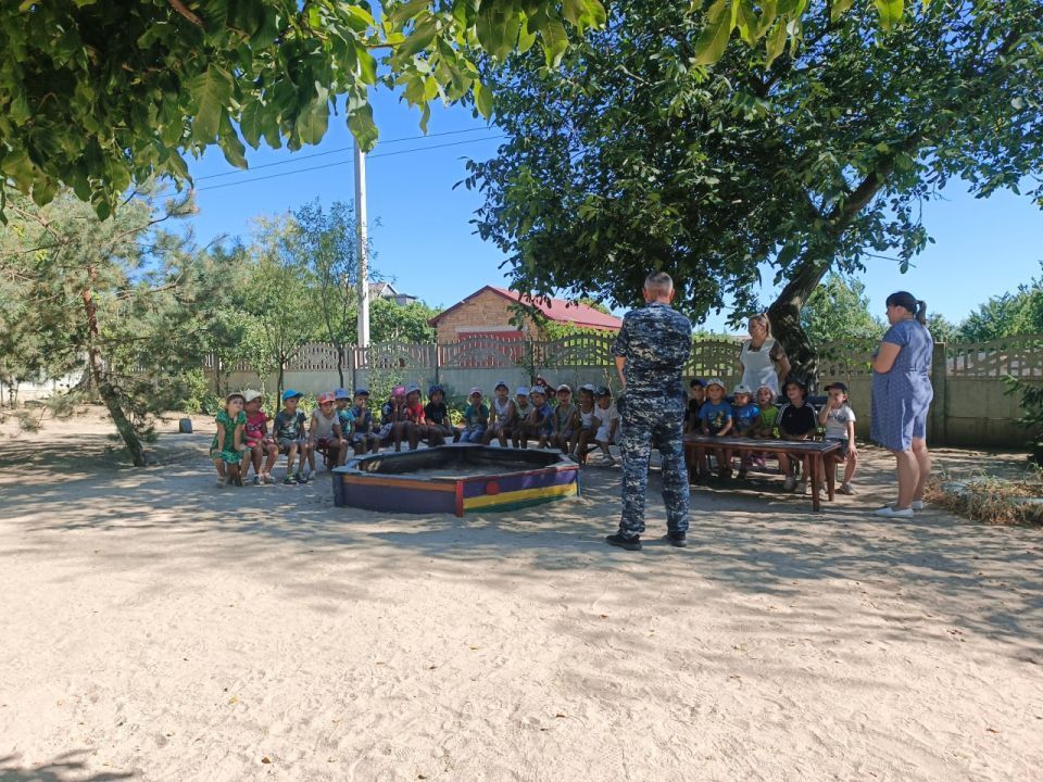 Сотрудники Херсонского ЛО МВД России на транспорте провели акцию «Зарядка со стражем порядка» в Счастливцевском детском саду