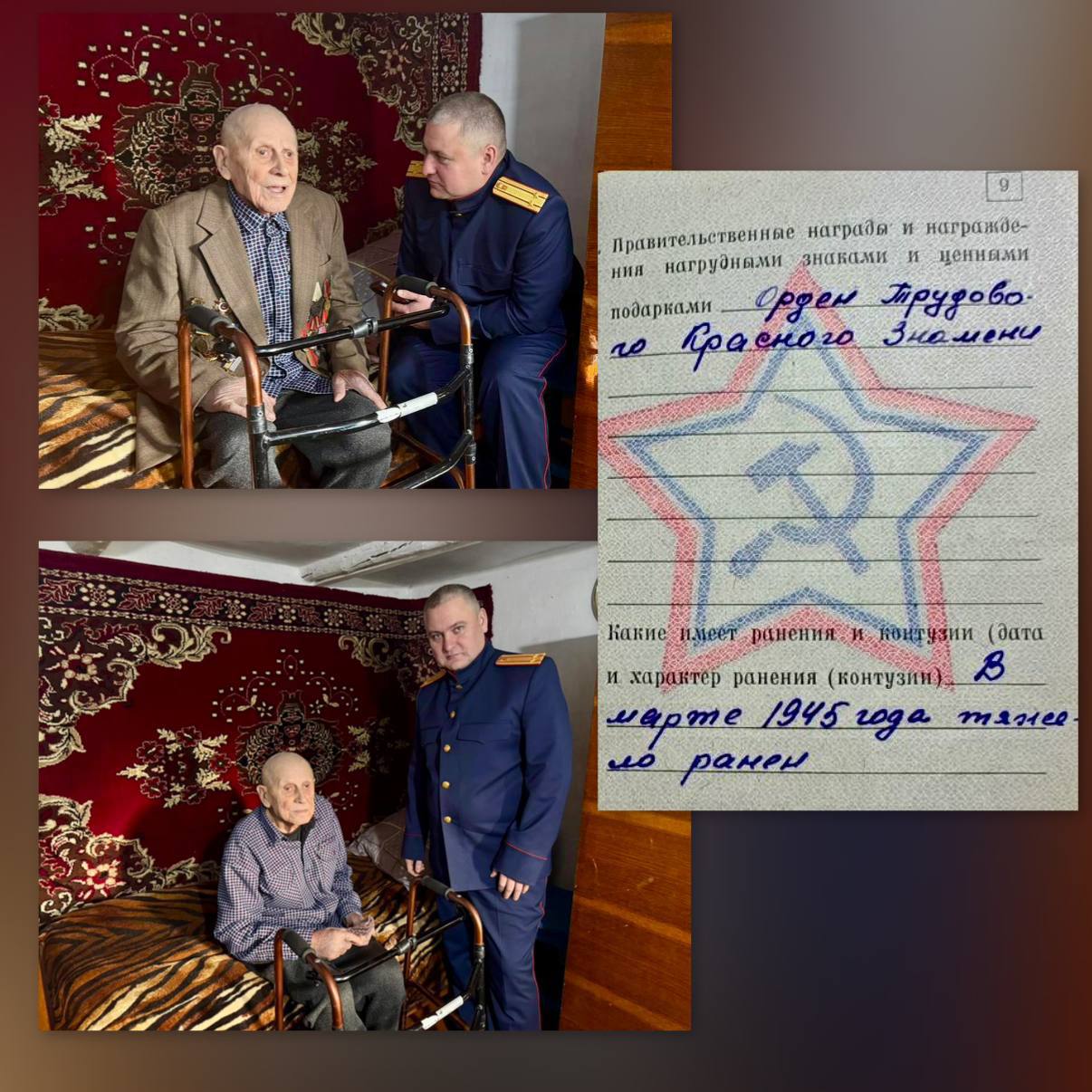 Офицер следственного управления Следственного комитета Российской Федерации по Херсонской области пожелал дорогому ветерану крепкого здоровья, долгих лет жизни и бодрости духа, выразив восхищение его жизненным путем и преданностью Отчизне.
