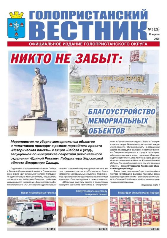 Вышел апрельский номер газеты «Голопристанский вестник»