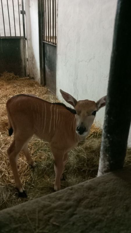 На фото — жеребенок зебры Чапмана и телёнок антилопы Канна. Впервые за последние 10 лет сотрудникам заповедника удалось получить приплод антилопы Канна, самой крупной антилопы в мире.