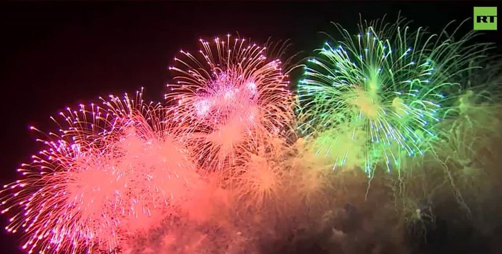 Праздничный салют в небе над Москвой в честь 80-летия Победы в Великой Отечественной войне
