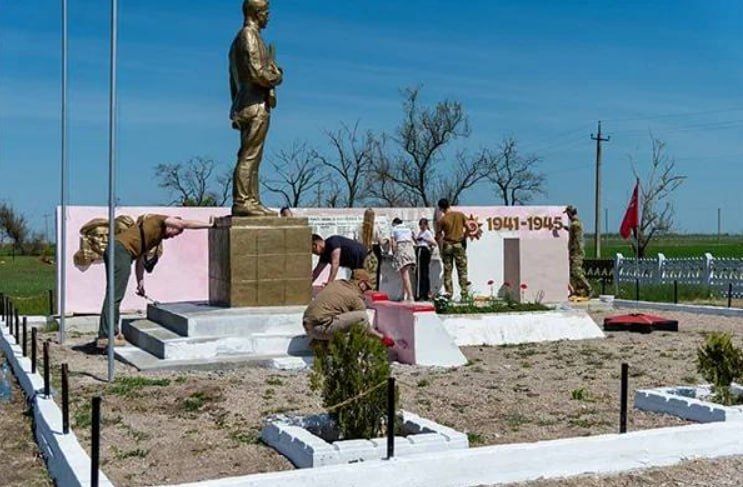 Военнослужащие совместно с активистами местного сельского клуба заменили ограждение и памятную табличку, обновили мемориальную стену и отреставрировали скульптуру.