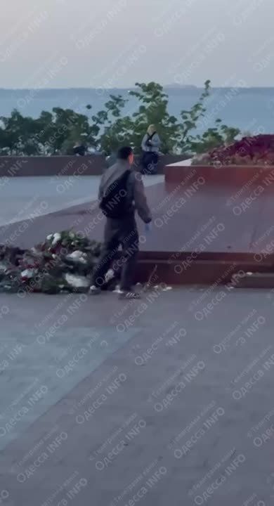 В Одессе подростки сгребли все цветы у памятника Неизвестному матросу