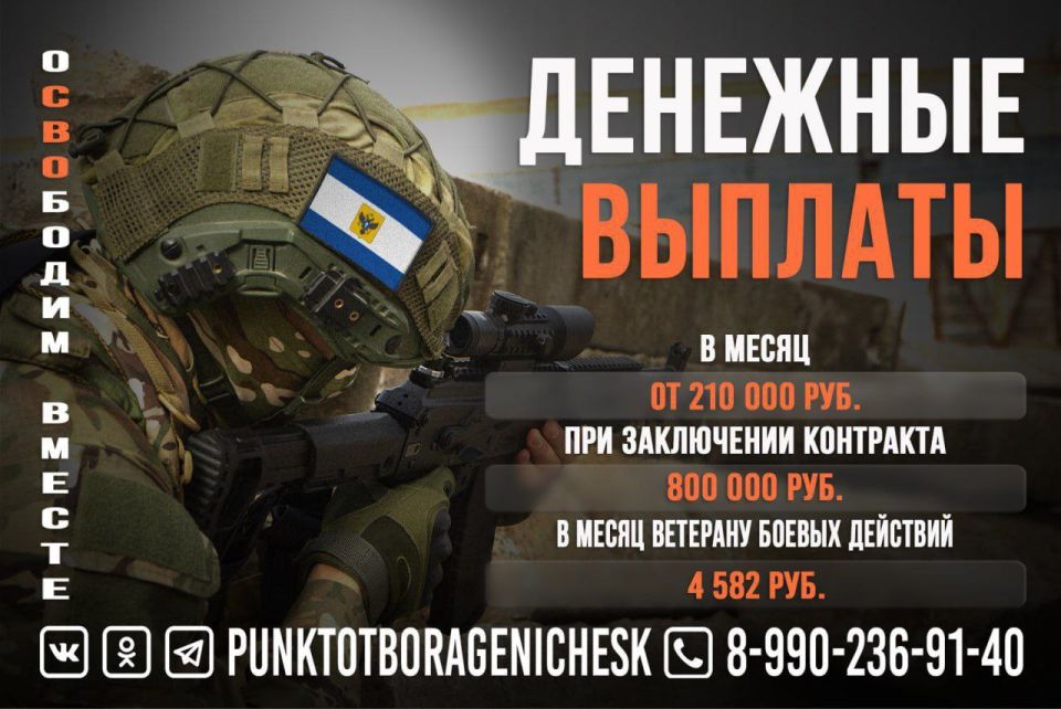 Ежемесячная выплата в зоне СВО от 210 000 руб.