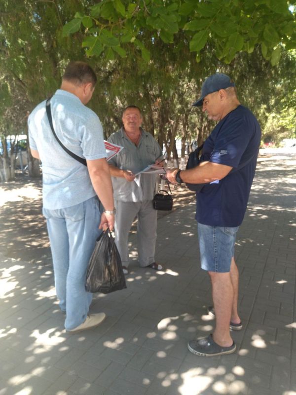 В рамках проведения Народного референдума Секретарь по агитационной и пропагандисткой работе регионального отделения КПРФ Николай Юрчук вместе с и.о. первого секретаря Генического местного отделения КПРФ Геннадием Гаркушей и членами партии провели опрос среди местного населения города Геническа.
