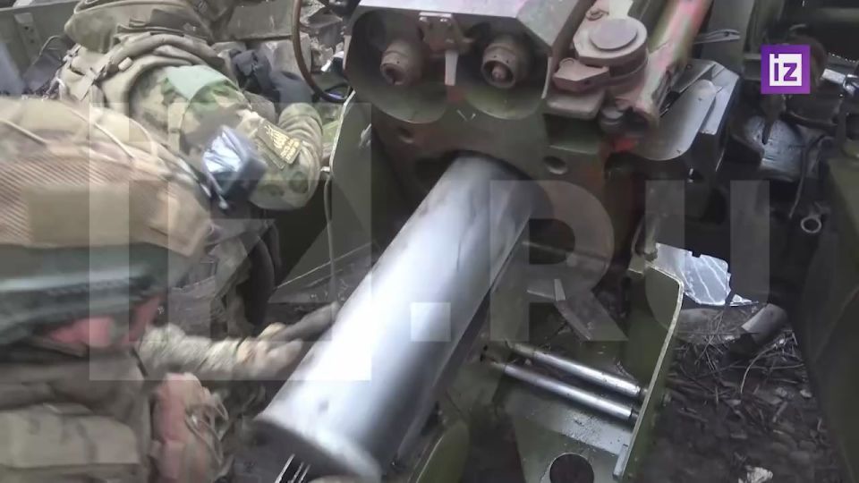"Еще один снаряд ушел в сторону противника — опорный пункт уничтожаем. "Гиацинт-Б" — очень точное орудие. Работают они круглосуточно, постоянно, на максимальной дистанции", — отметил военкор.