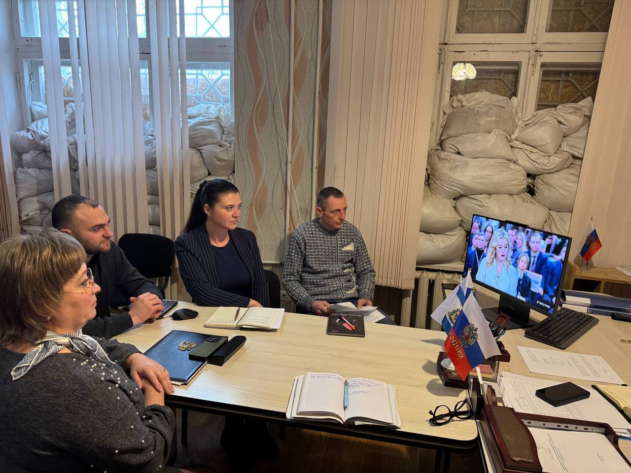 Сотрудники администрации прифронтовой Новой Каховки внимательно следят за прямой линией Президента.