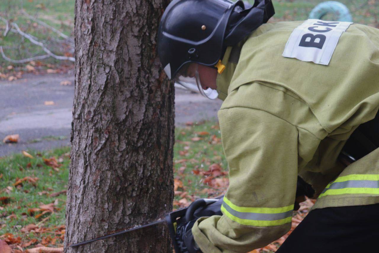 Студенты-спасатели оказали помощь в ликвидации аварийных деревьев на территории школы.