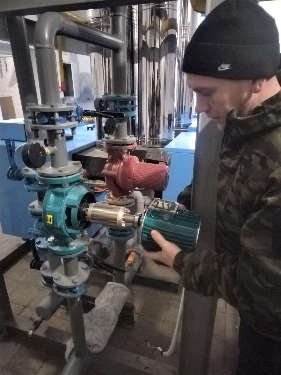 Специалисты выполнили ремонт циркуляционного насоса системы отопления в школе №3 города Геническа. Двигатель насоса был перемотан в Адыгее, после чего установлен на месте.