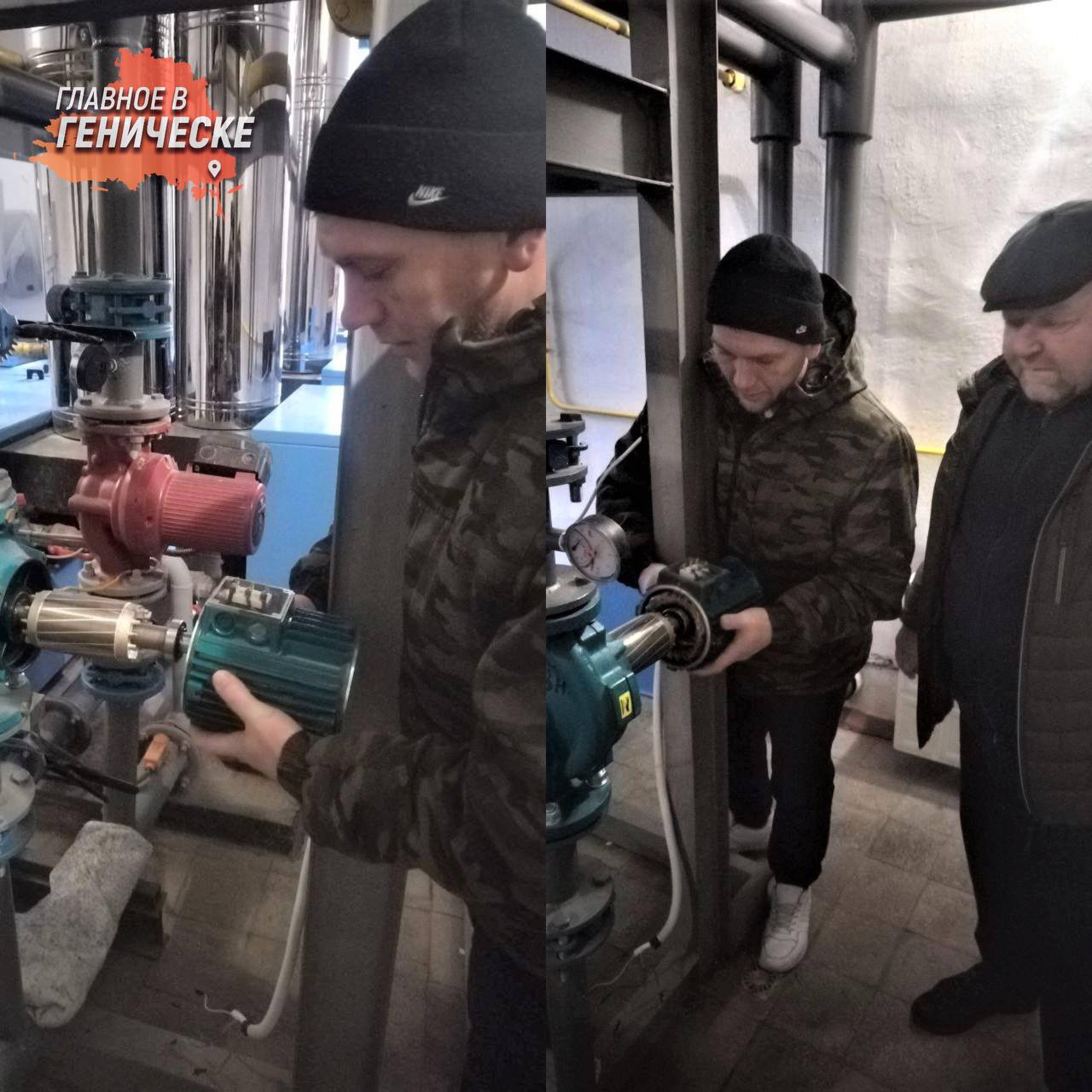 Ремонтная бригада из Адыгеи продолжает свою работу в Геническом муниципальном округе, где специалисты отремонтировали циркуляционный насос системы отопления в школе №3. Двигатель насоса был перемотан в Адыгее и установлен на месте.