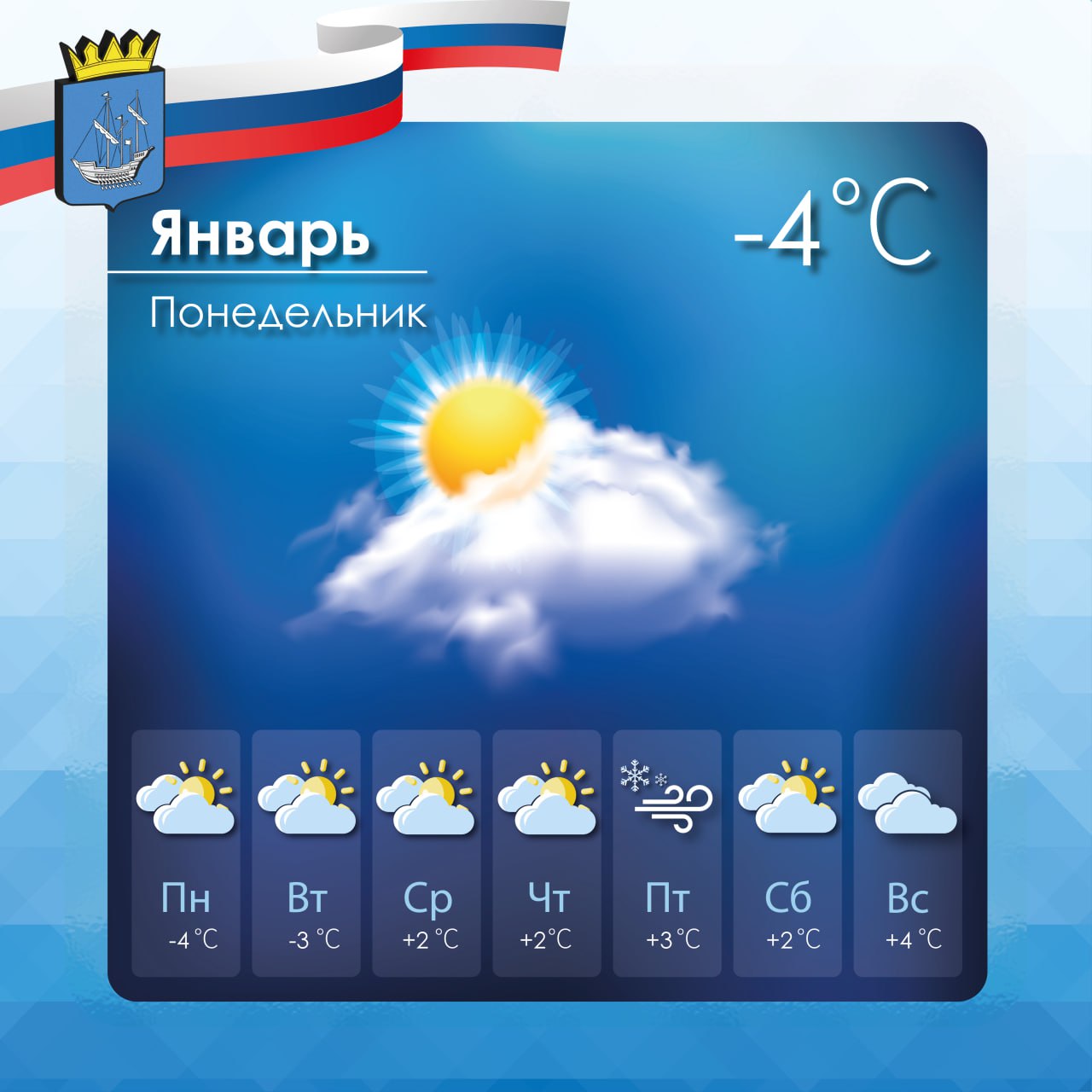 Прогноз погоды в Алешкинском муниципальном округе на понедельник, 19 января