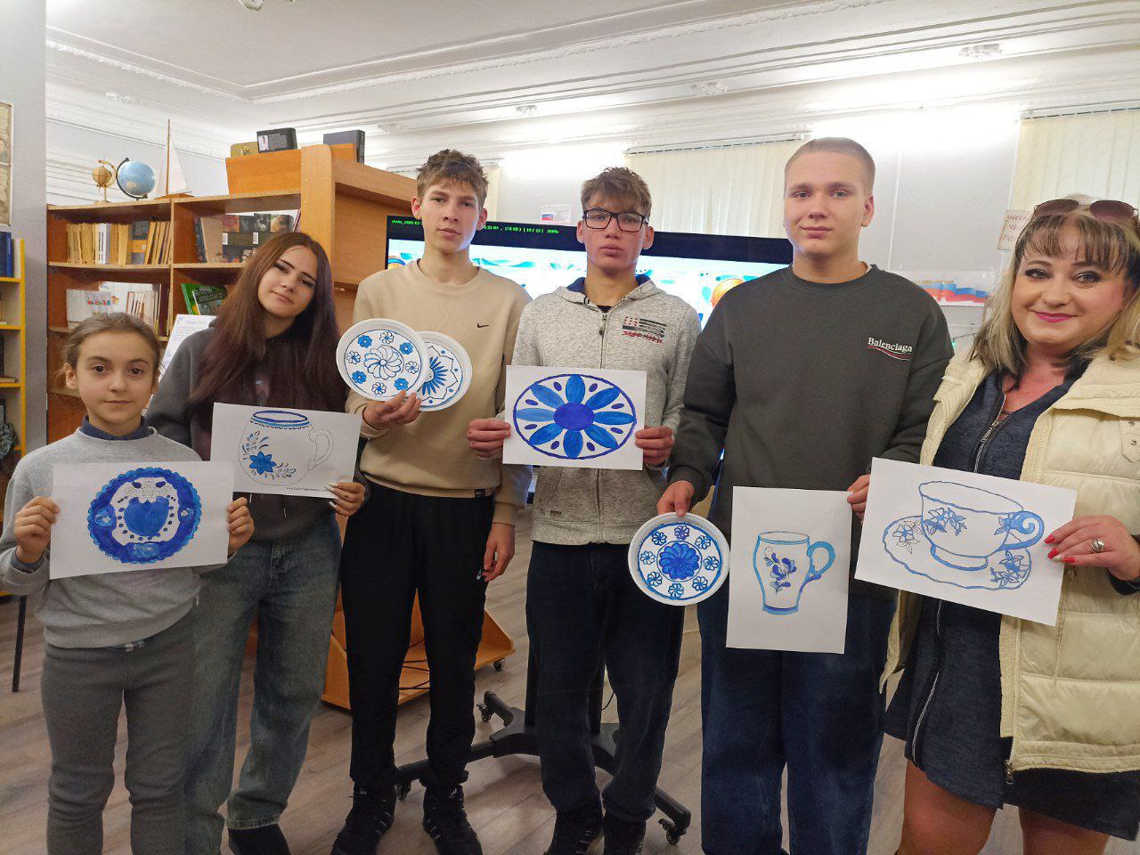 К Году единства народов России в Любимовской библиотеке прошел увлекательный экскурс в мир искусства под названием «Синь России: гжель — это искусство»