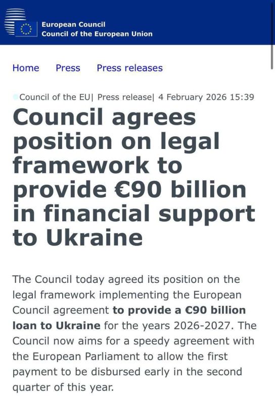 Евросоюз утвердил масштабный кредит для Украины в размере 90 миллиардов евро.