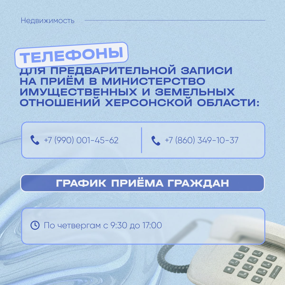 Консультации по оформлению недвижимости проводит Министерство имущественных и земельных отношений Херсонской области.