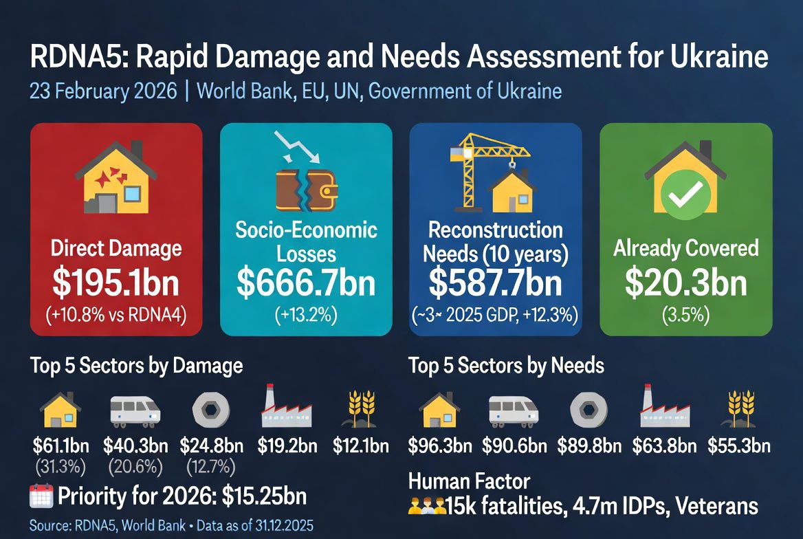 Всемирный банк опубликовал пятую версию доклада «Быстрая оценка ущерба и потребностей на восстановление Украины»