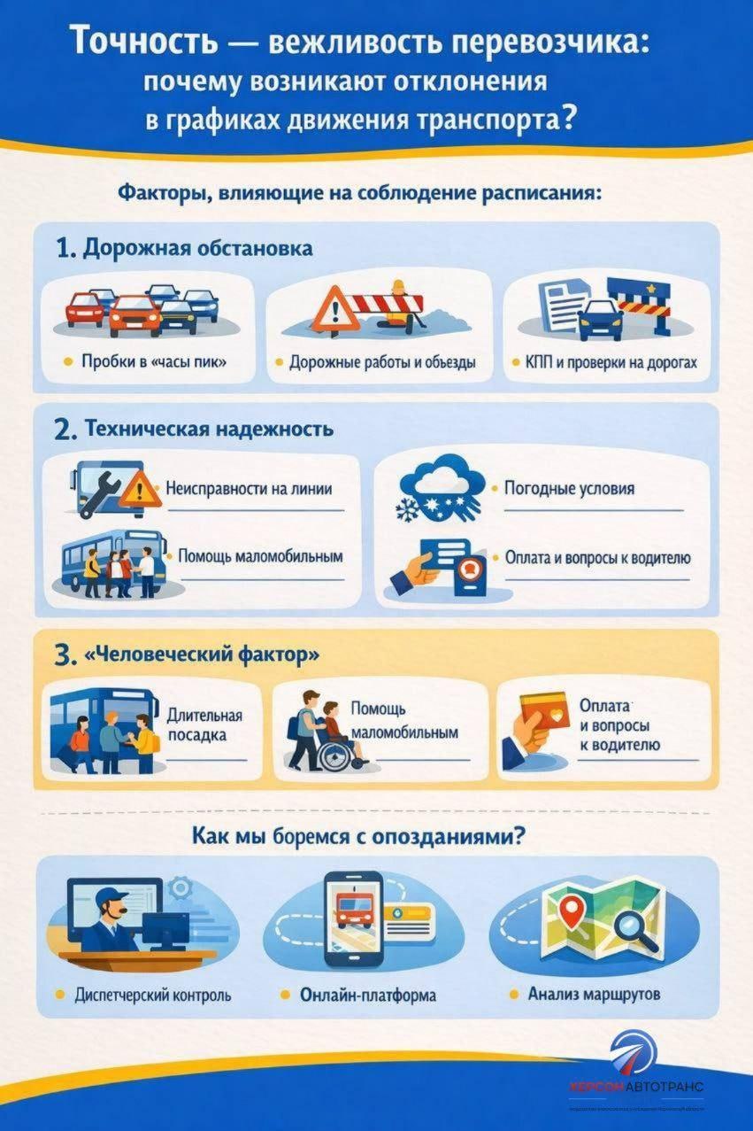 Точность — стандарт работы перевозчика. Почему иногда автобусы могут задерживаться?