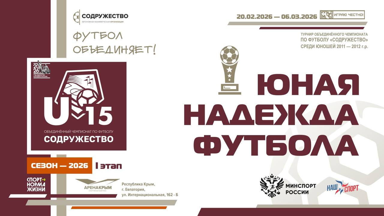 С 20 февраля по 6 марта 2026 г. в г. Евпатория, Республика Крым, проходил первый этап турнира Объединённого чемпионата по футболу «Содружество» среди юношей 2011-2012 годов рождения U-15.