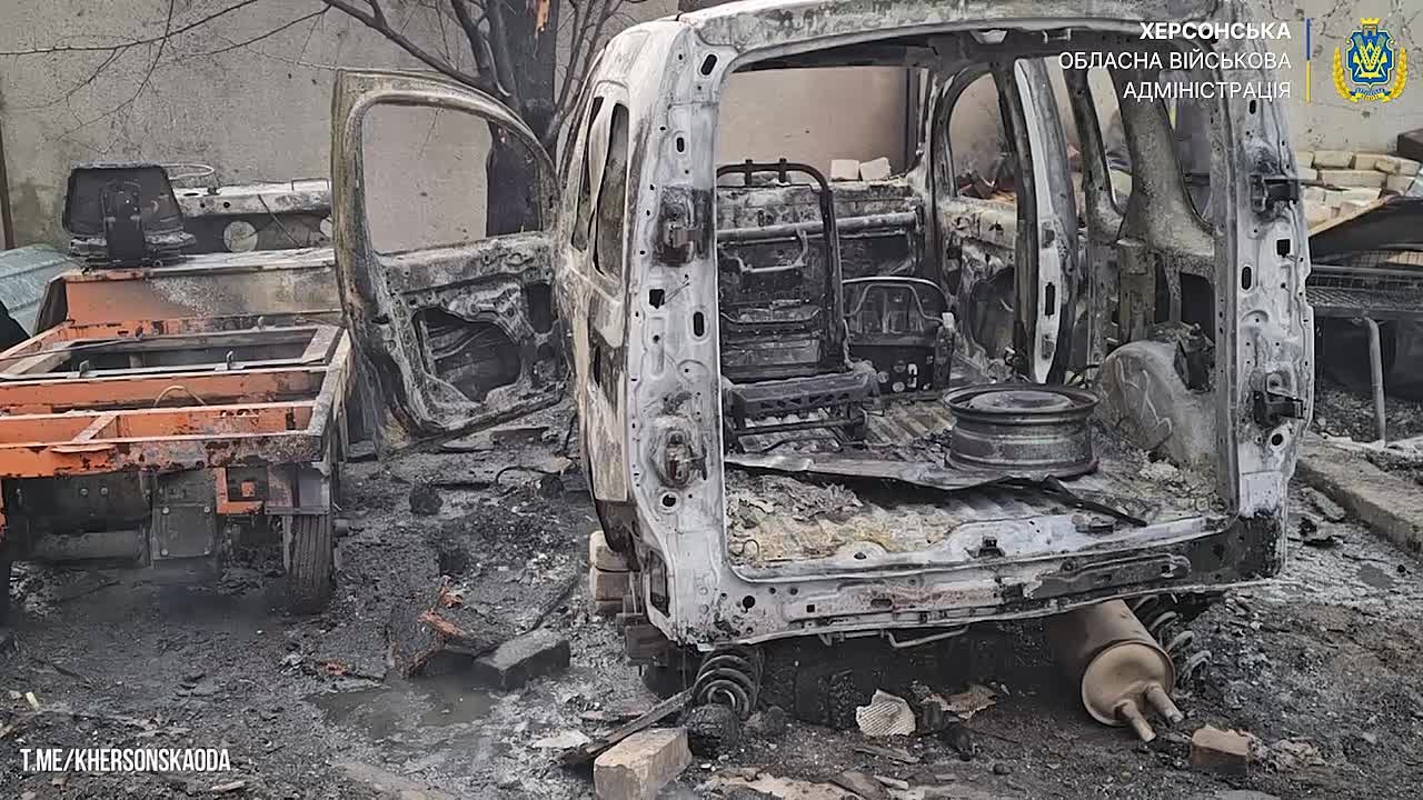 Около 13:00в Центральном районе Херсона под удар с дрона попали 4 авто, сгорели под чистую.