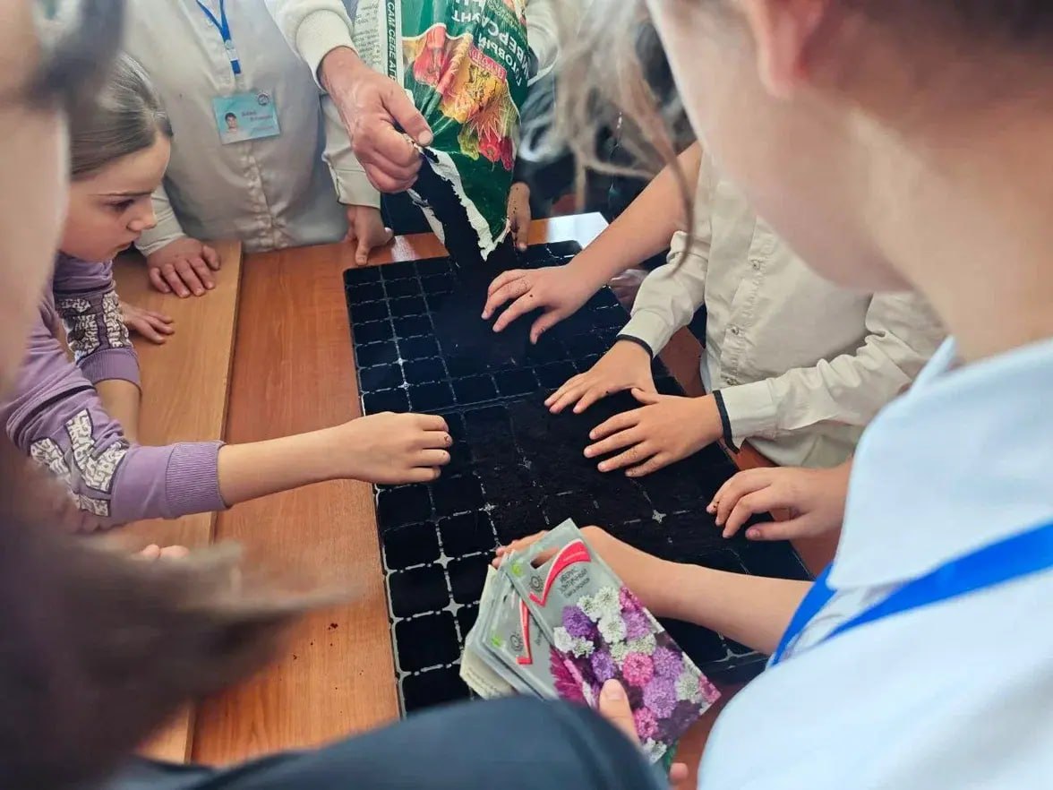 После теоретической части мероприятие продолжилось практикумом. Специалисты ГАУ ХО «Скадовское лесоохотничье хозяйство» провели для активистов мастер-класс по высадке семян цветов. Полученные растения в дальнейшем будут использованы для озеленения территории школы. Ребята собственноручно высадили семена в подготовленные кассеты и узнали о правилах ухода за будущими цветами.