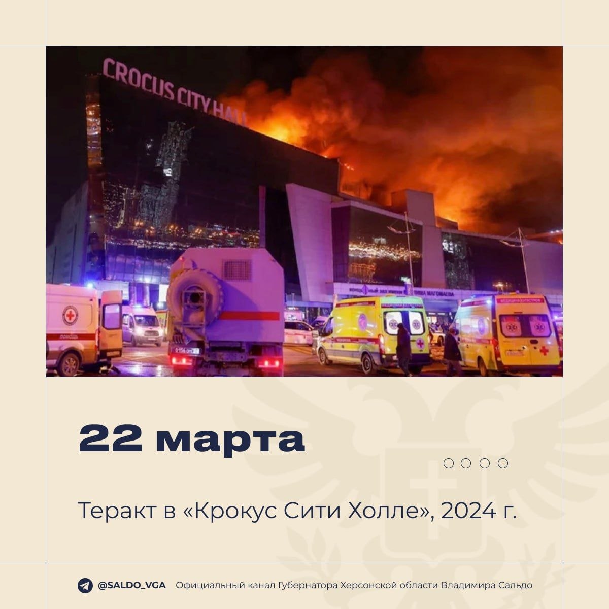 Владимир Сальдо: память о погибших во время теракта в "Крокус Сити Холле" остается с нами навсегда
