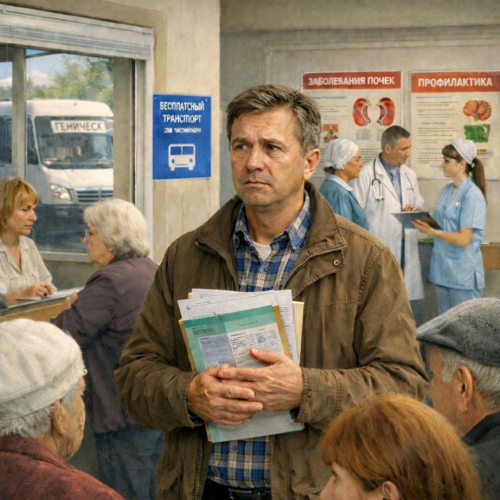Для бесплатного проезда до Геническа и обратно, жителям Каховского округа нужно иметь на руках справку о том, что они нуждаются в процедуре гемодиализа.