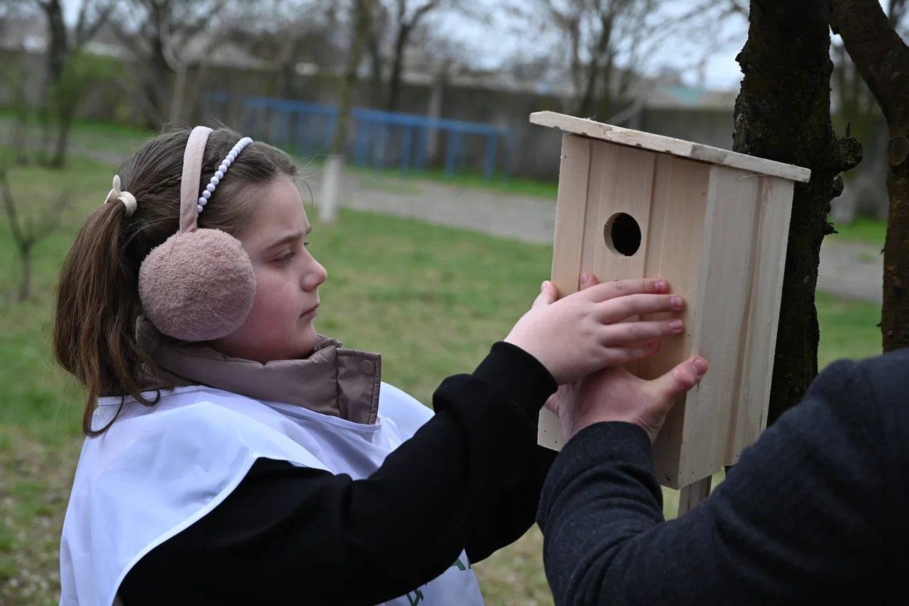 Школьный двор заметно преобразился: на деревьях разместили новые домики для птиц. Ребята не просто помогали с установкой, но и выбирали подходящие места, обсуждали, какие пернатые здесь поселятся, и учились заботиться о природе на практике под руководством специалистов.