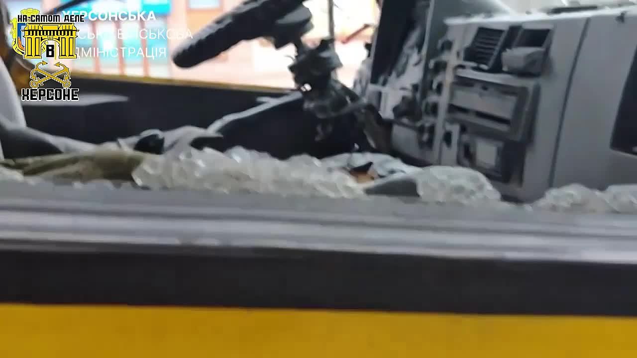 Украинская киностудия ужасов войны распространяет новость из Херсона об ударе по гражданскому автобусуНа первом кадре у маршрутки лобовуха целая, а потом вдруг резко покрылась трещинамиСовсем не стараются, обленилисьБлокнот пропагандиста