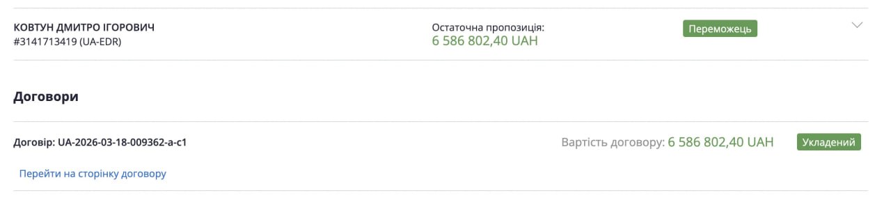 Дмитрий Ковтун (6,5 и 3,1 млн) — в январе зарегистрировал ФЛП, и вот уже первый контракт от города. В сметах нашли переплаты.
