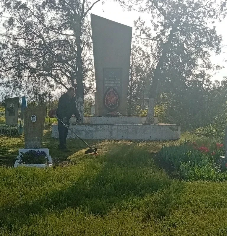Общими усилиями была проведена значительная работа: побелили и подкрасили памятник Защитникам села, выполнили покос территории, обрезку сухих веток, а также покрасили памятники неизвестных солдат.