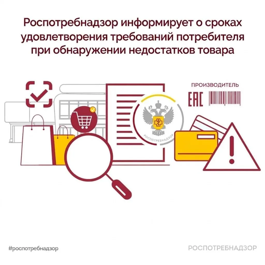 Иногда возникают ситуации, когда после покупки товара потребитель находит в нем те или иные недостатки. Роспотребнадзор напоминает о сроках удовлетворения требований потребителя в таких обстоятельствах.