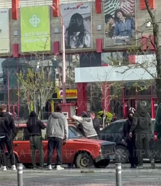Полиция задержала автомобиль, и уже через 10 минут подъехали ТЦКашники - после этого началась драка. У одного из ТЦКашников окровавленная балаклава.