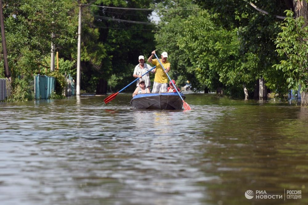 НОВАЯ КАХОВКА /Херсонская область/, 9 июня. /ТАСС/. Трасса между Новой Каховкой и Херсоном, которая нужна для эвакуации жителей Алёшек и Голой Пристани, четвертый день затоплена после разрушения украинскими войсками Каховской ГЭС...