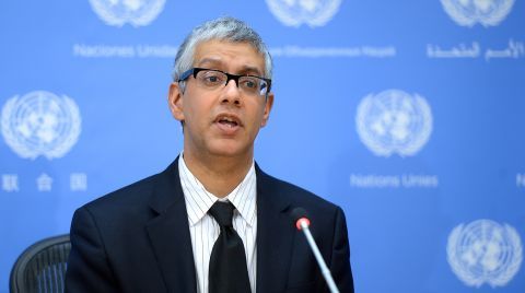 Заместитель официального представителя генерального секретаря ООН Фархан Хак заявил об осуждении всемирной организацией обстрелов гражданской инфраструктуры в Новой Каховке. // Олег Царёв