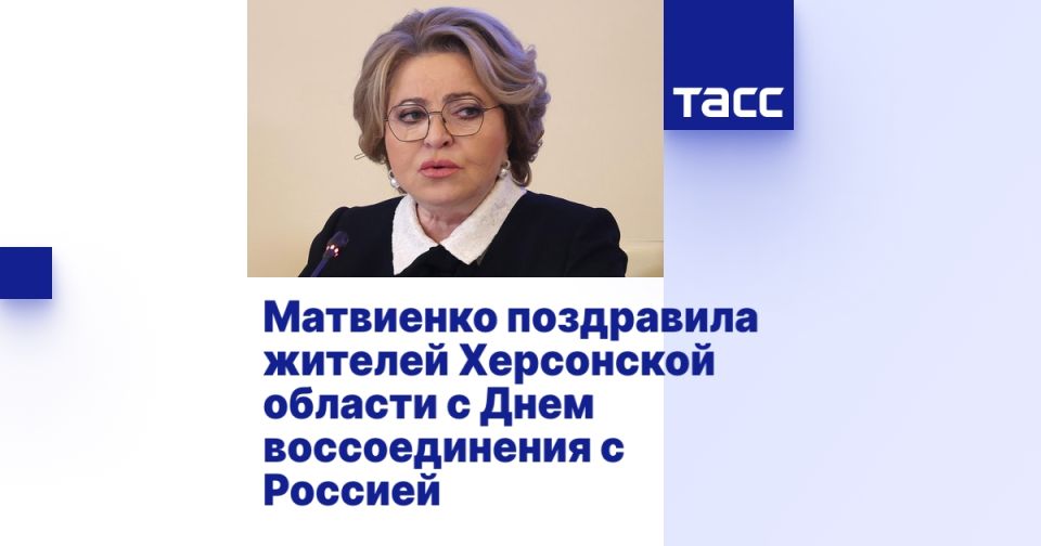 МОСКВА, 30 сентября. /ТАСС/. Председатель Совета Федерации Валентина Матвиенко поздравила жителей Херсонской области с годовщиной воссоединения с Российской Федерацией. Поздравление было направлено в адрес губернатора региона Владимира...