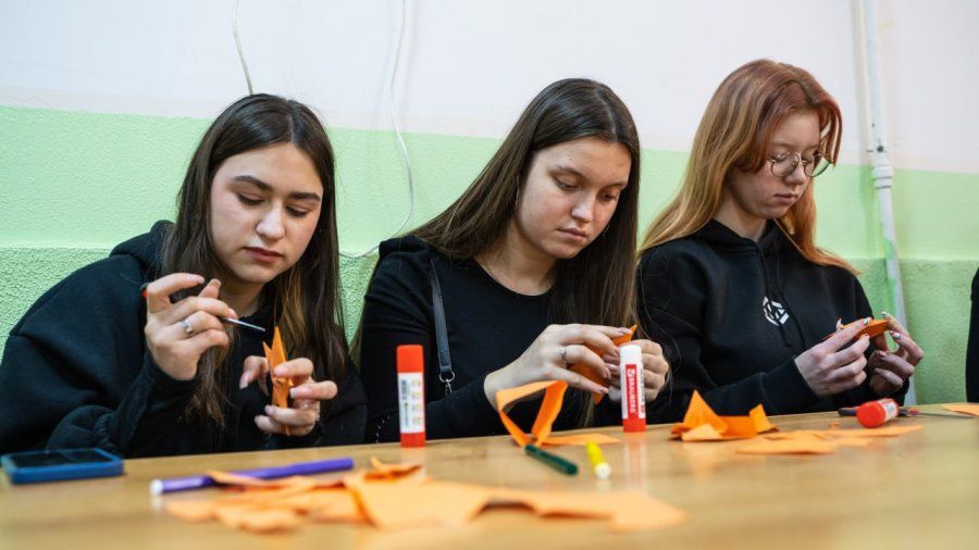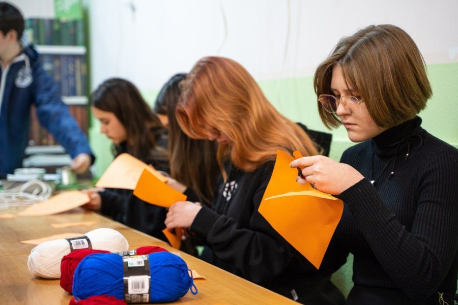 После диалога представители молодёжи приняли участие в акции «С любовью, Защитники!»: создали окопные свечи, бумажные звёзды с пожеланиями, нарисовали праздничные открытки и куколки-обереги для бойцов, которые находятся в зоне специальной военной операции. Всего ребята сделали порядка 30 свечей и 50 куколок вместе со звёздами.