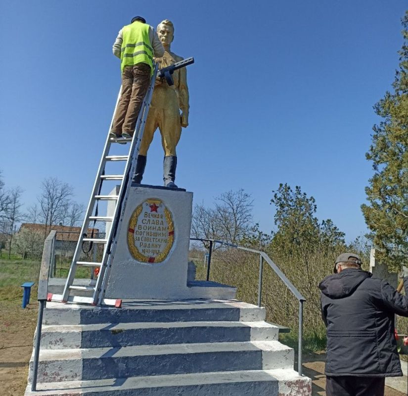 Совместными усилиями сотрудников сельского поселения и специалистов МКУ «Благоустройство Голопристанского МО» была проведена работа по благоустройству мемориального объекта: оштукатурили и побелили постамент, покрасили обелиск, а также навели порядок на прилегающей территории.