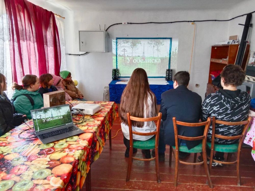 В ходе праздника был организован просмотр видеоролика "У обелиска", который переносит нас в самые трагичные и героические моменты нашей истории. Действительно, долго и мучительно шел наш народ к великой победе. Война... Это слово знакомо каждому, и нет в России ни одной семьи, которую бы не коснулась его ужасная тень.