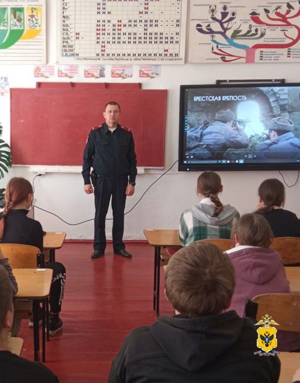 "Стражи правопорядка рассказали ребятам о роли советской милиции, сотрудники которой, наряду с бойцами Красной Армии, сражались в окопах, а также несли службу по охране правопорядка в ближайшем тылу, мало чем отличавшемсяот переднего края", — говорится в сообщении.