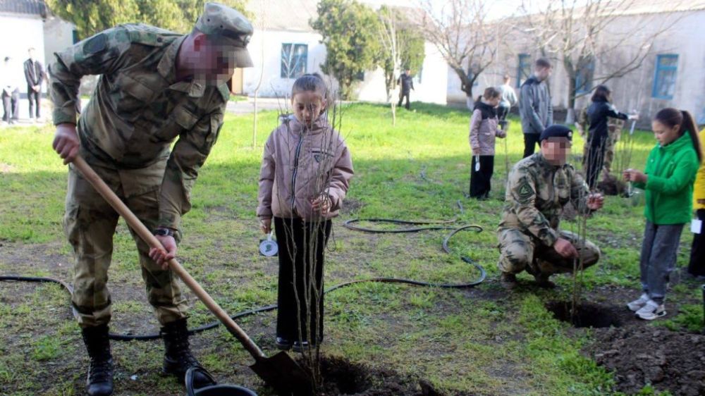 В Геническе росгвардейцы и воспитанники санаторной школы-интерната высадили аллею в честь 80-летия Победы в Великой Отечественной войне.