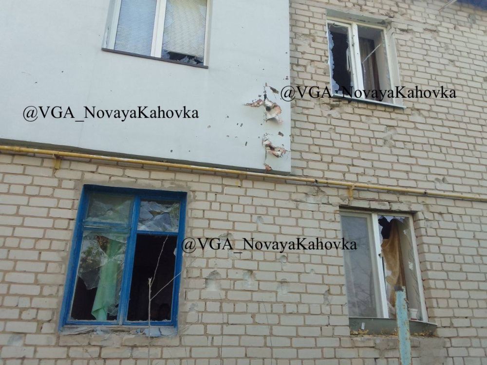 В результате обстрела повреждены многоквартирные дома в пгт. Днепряны по ул. Корсунская (выбиты окна, выгорело несколько квартир), поврежден газопровод.