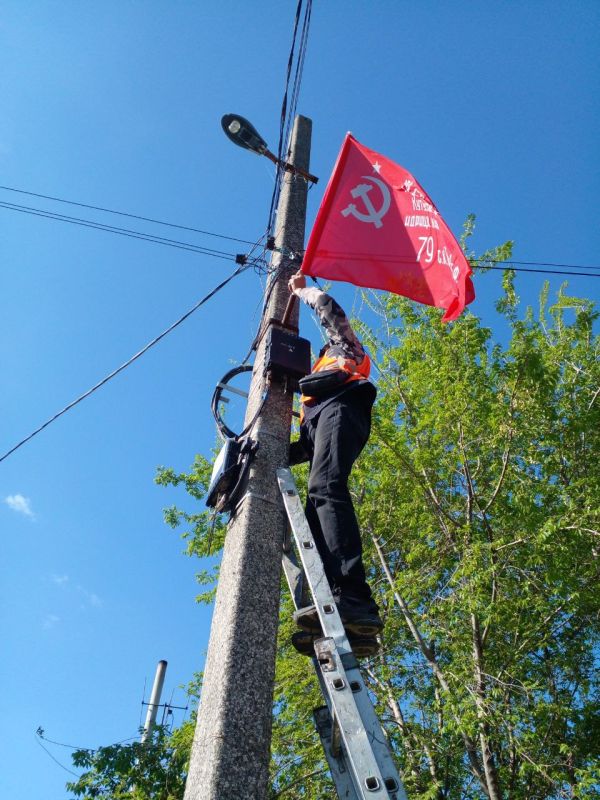 В Геническе коммунальные работники МКУ "Горжилстрой", в преддверии 80-летия Великой Победы, украсили флагами улицы Центральную, Гоголя, Курасова и Соборную.