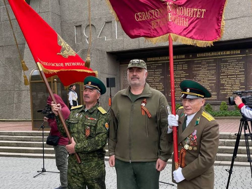 начальник штаба ветеранской организации Пограничной службы СМЕРШ в городе Севастополь, член совета ветеранов военной разведки ЮВО Анатолий Стариков, вручил председателю Общественной палаты Херсонской области, председателю исполкома ХРО "Бессмертный полк России", Игорю Качуру, памятный адрес и медаль "80 лет Победы в Великой Отечественной войне".
