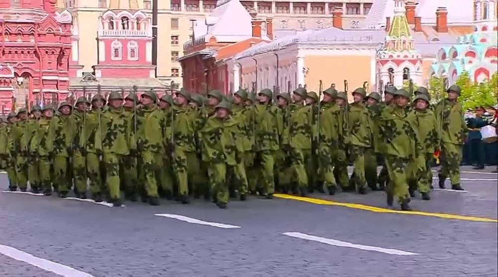 По Красной Площади прошли парадные расчеты летчиков военных лет, военных моряков, саперов, разведчиков, а также пехотинцев с винтовками Мосина