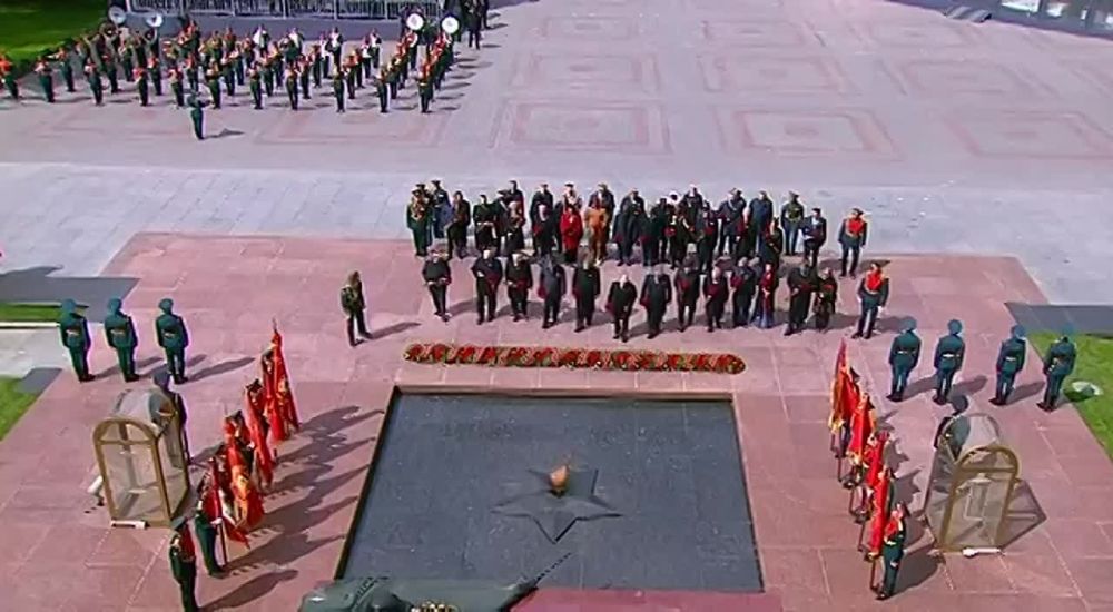 После завершения парада на Красной площади Владимир Путин прошел к Вечному огню у Кремлевской стены. Вместе с лидерами и представителями КНР, Белоруссии, Казахстана, Киргизии, Узбекистана, Туркменистана, Лаоса, Армении, Венесуэлы, Египта, Монголии и других стран он возложил цветы в память о погибших воинах Великой Отечественной войны.