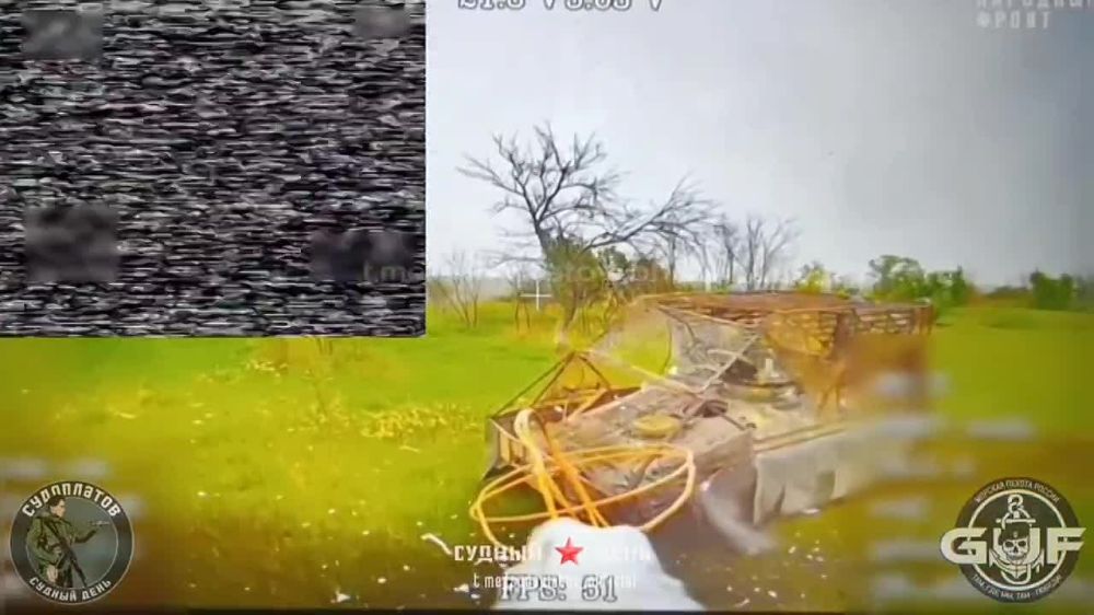 Уничтожение FPV-дроном "ВТ-40" британского FV103 Spartan в районе н.п. Дылеевка. Объективный контроль в момент удара по технике фиксирует дрон на оптоволокне.