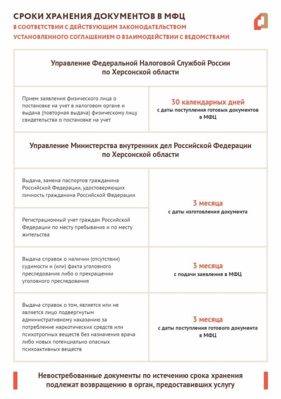 В силу различных обстоятельств заявители не всегда успевают вовремя получить документы, подготовленные по результатам оказания услуг. Невостребованные документы передаются обратно в уполномоченный орган на архивное хранение.